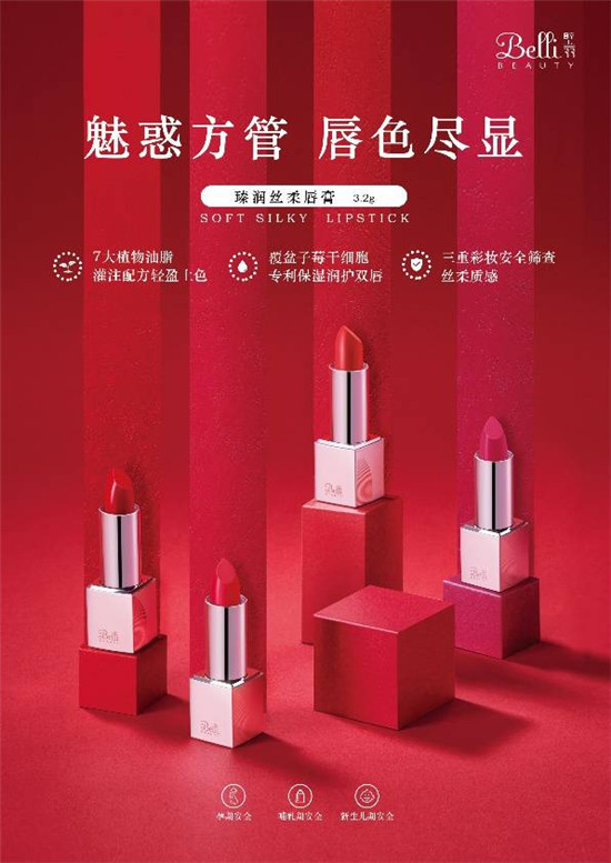 口紅一直以來都是女性妝容的點睛之筆,孕媽的好氣色無論如何都離不開口紅的妝點。Belli璧麗唇妝產(chǎn)品口紅、唇釉,以其絕佳的質(zhì)地、新潮的顏色成為人氣孕妝產(chǎn)品,銷量始終穩(wěn)定保持在品類前列。