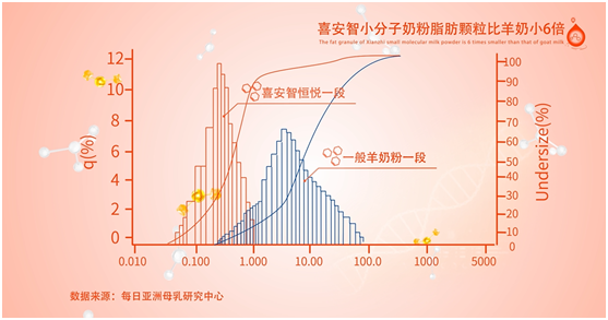 小分子蛋白質(zhì)的添加成為奶粉近幾年的趨勢(shì),但卻鮮有奶粉關(guān)注奶粉中的脂肪顆粒大小。喜安智是行業(yè)內(nèi)首個(gè)提出“小分子蛋白+小顆粒脂肪組合”的小分子奶粉品牌。