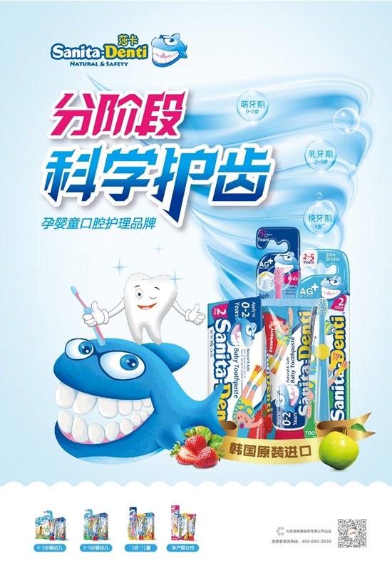 為滿足嬰幼兒口腔護(hù)理需求,Sanita-Denti(莎卡)充分考慮嬰幼兒每個(gè)階段的生長(zhǎng)規(guī)律,更細(xì)化的研發(fā)了嬰幼兒口腔護(hù)理系列產(chǎn)品,特別針對(duì)嬰幼兒口腔護(hù)理的特點(diǎn)設(shè)置了分段產(chǎn)品,旨在通過(guò)分階段科學(xué)護(hù)齒來(lái)滿足寶寶每個(gè)成長(zhǎng)階段的需求,呵護(hù)寶寶口腔健康,讓寶寶口腔護(hù)理達(dá)到事半功倍的效果。
