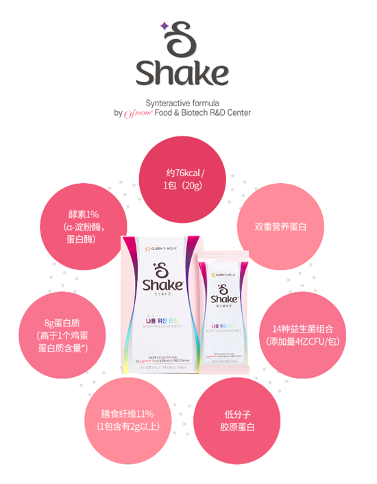 為滿足消費(fèi)者便捷性健康、輕體的訴求,韓美集團(tuán)開始在中國布局功能代餐市場, 倡導(dǎo)"輕盈活力每一天"的代餐新體驗(yàn),推出新品——韓國原裝進(jìn)口的QUEEN'S HOLIC S Shake酵素益生菌代餐奶昔。