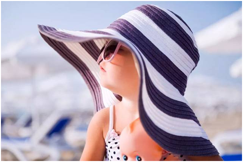 2、夏日出門最好穿淺色寬松透氣的帶袖上衣和長褲/七分褲。戴上寬檐遮陽帽和兒童太陽鏡,“硬防曬裝備”是寶寶防曬首選。