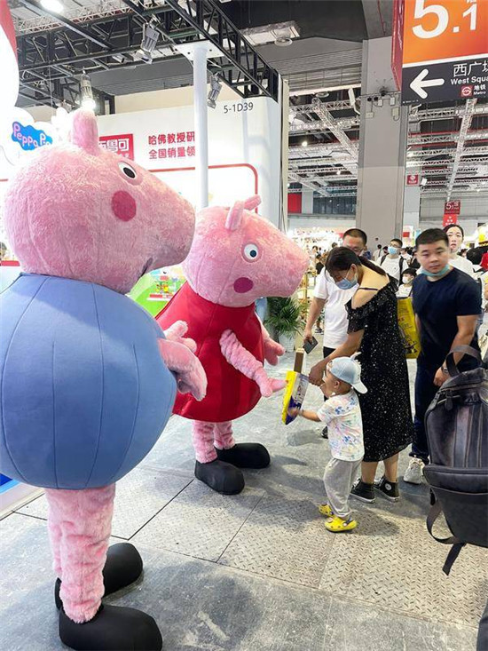 在布魯可積木展臺主入口,一個碩大的“佩奇的船上派對”場景立體豐滿地展現(xiàn)在大眾面前。展臺前兩個小豬佩奇人偶吸引了來往訪客的注意,眾多小朋友紛紛上前合照,連大人路過都會忍不住和他們握握手,讓布魯可積木著實成為了整個CBME玩具場的焦點。從展臺布置到人偶互動,布魯可積木無不在透露著近期重磅推出的產(chǎn)品信息——小豬佩奇系列新品。本次CBME上,布魯可首次亮相了佩奇的船上派對、佩奇的樹屋、佩奇與四季花園等11款小豬佩奇IP聯(lián)名系列新品SKU。