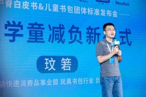 發(fā)布會上天貓快消品事業(yè)部玩具書包負(fù)責(zé)人玟箬發(fā)表致辭,強調(diào)“行業(yè)迫切的需要一個標(biāo)準(zhǔn),更科學(xué)地去定義護(hù)脊書包/減負(fù)書包,規(guī)范整體行業(yè)的產(chǎn)品,推動整個兒童書包產(chǎn)業(yè)的升級?!庇纱私议_了本次活動的重要序幕。