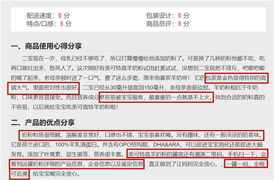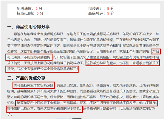 在前兩期的試用中,許多寶媽獲得了試用資格,并已經(jīng)給自己家的寶寶試用了?;顒?dòng)至今已收到百余份寶媽們的反饋:無論是從奶粉的包裝、顏值還是羊奶粉的粉質(zhì)、口感、味道以及配方的營養(yǎng)性等都得到了普遍性的五星好評(píng),這波點(diǎn)贊峰值的出現(xiàn)其實(shí)也是意料之中,畢竟美可高特是中國第一個(gè)嬰幼兒配方羊奶粉品牌,專心專注專業(yè)做配方羊奶粉27年,實(shí)力硬核。