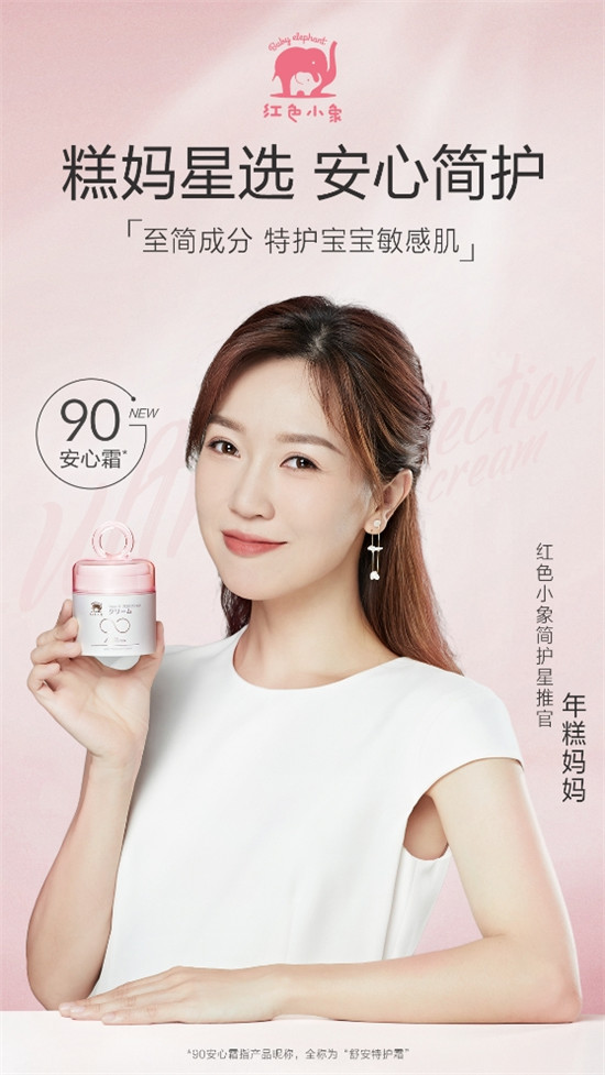 紅色小象借新品上市之際,官宣年糕媽媽成為紅色小象90安心霜的“簡(jiǎn)護(hù)星推官”。
