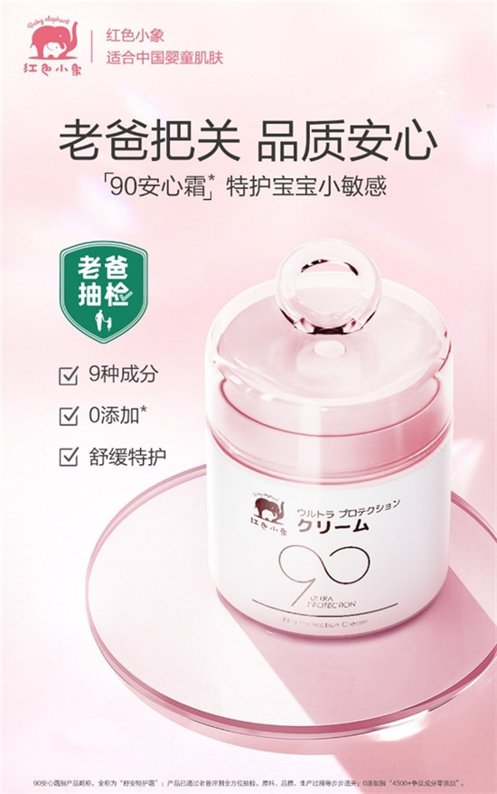 在母嬰風(fēng)口“飛”不停的紅色小象,為滿足寶寶修護(hù)敏感的迫切需求,于近日推出了一款主打“極簡(jiǎn)護(hù)膚”的新品——舒安特護(hù)霜(亦稱90安心霜)。