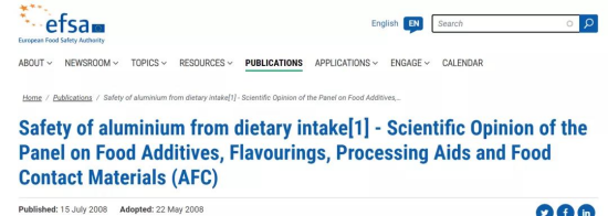 歐盟、中國和世界其他國家一樣,并不把鋁作為污染物管理。根據(jù)風(fēng)險評估的結(jié)果,控制鋁主要是規(guī)范含鋁食品添加劑的使用,而不是控制食物中天然含有的鋁。