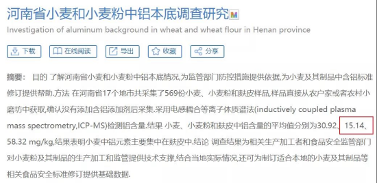 鋁是地殼中含量最高的金屬元素,因此天然的存在于環(huán)境、水和各類食物中,嬰幼兒輔食中用到的小麥粉、蔬菜粉等也不例外。一些科學(xué)研究對小麥及小麥粉中本底的鋁含量進(jìn)行過測定,比如下圖的研究。所以嬰幼兒輔食中的鋁顯然是天然本底,而不是生產(chǎn)過程中額外添加。