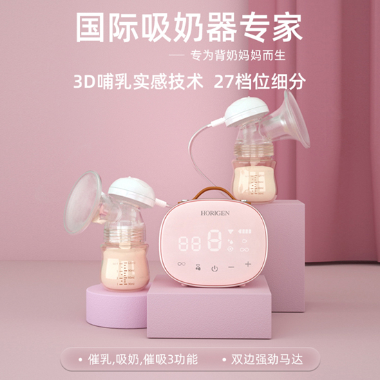 HORIGEN好女人雙邊電動吸奶器以特有的韻律實現了無痛仿真吸奶技術,真正做到“吮吸”動作,刺激媽媽的乳暈四周,產生生理反應,快速分泌催乳產奶,不會損傷乳腺體。解決媽媽無乳、少乳的哺乳難題。