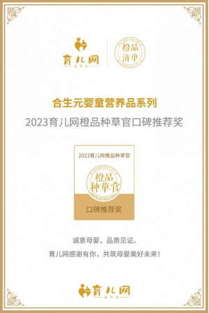 合生元旗下“合生元嬰童營養(yǎng)品系列”憑借其科學(xué)的營養(yǎng)配比、對(duì)安全品質(zhì)的堅(jiān)守以及在母嬰行業(yè)的超高專業(yè)度,榮獲2023育兒網(wǎng)橙品種草官口碑推薦獎(jiǎng),產(chǎn)品獲得了育兒網(wǎng)媽媽們的一致口碑好評(píng)。